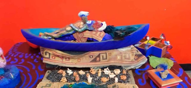 Las instalaciones de Nelson Román son experiencias inmersivas que desafían los límites del cuadro. En ellas, el espectador deja de ser un observador pasivo para entrar en un espacio sagrado o político. Utilizando elementos como plumas, piedras, huesos o textiles, crea entornos que funcionan como puestas en escena de la cosmogonía andina, transformando la sala de exposición en un templo de reflexión.